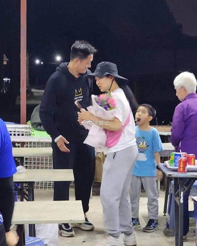 到了生日当晚他们一家人和亲友一起烧烤,不过杨证桦白天就要出去工作,而到了晚上他工作完立刻回到营地。下车后走到营地要经过一条又黑又远的路,而他还是拿着生日蛋糕和鲜花等赶过来给太太惊喜,沈可欣收到后自然是很开心。