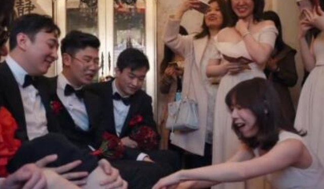 上周六,前dota职业选手伍声结婚,上了好几次热搜,不过都是与王思聪有关的。比如,王思聪给酒神当伴郎、王思聪送新郎新娘劳斯莱斯等等。而近日,酒神迎亲现场画面曝光,伴郎团被伴娘团“欺负”的视频,没想到王思聪也被折腾了。