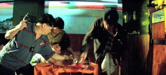 另一边,耀东来到夜总会见基哥的儿子荣少爷,说自己是来拿他老爸放出的“暗花”的。这让荣少爷怒不可遏,掏出枪来要杀掉耀东。但一旁“醉酒”的陪酒女阿凤却吐在了阿荣的手上,夜总会老板大声公急忙出面打圆场,将阿荣支走。