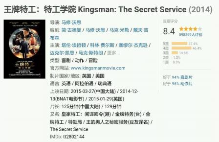 《王牌特工:特工学院》改编自马克·米勒的同名漫画,由马修·沃恩执导,科林·费尔斯、塞缪尔·杰克逊、马克·斯特朗、塔伦·埃哲顿、迈克尔·凯恩、索菲亚·宝特拉等联袂出演的一部科幻动作片。