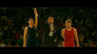 看完影片后,姐姐吉塔拿5分的过头顶彩虹摔让我很难忘。在在后十几秒紧张激烈的摔跤较量中,影片画面完全采用了慢镜头,并且在计时器、吉塔、巴比塔和观众之间来回切换,营造了紧张的气氛。在关键时刻配上父亲的画外音,画外音和吉塔的动作同时进行,表现了吉塔已经做到了独立成长。画外音让观众感受到吉塔的过头顶彩虹摔毫不突兀,水到渠成。在裁判宣布吉塔赢得比赛之时,背景音乐戛然而止,让观众真切感受到影片内的震惊,这是神圣的一幕。停顿几秒钟之后音乐和印度人民的欢呼声同时响起,喜悦激动之前表现得淋漓尽致。镜头特写也很到位,吉塔亲吻地面还有巴比塔泪流满面的镜头,不禁让观众为之感动。