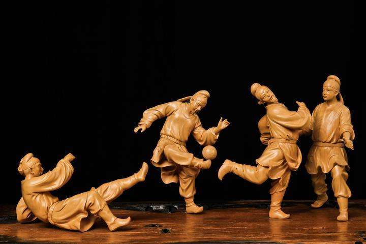(黄杨木雕:蹴鞠)