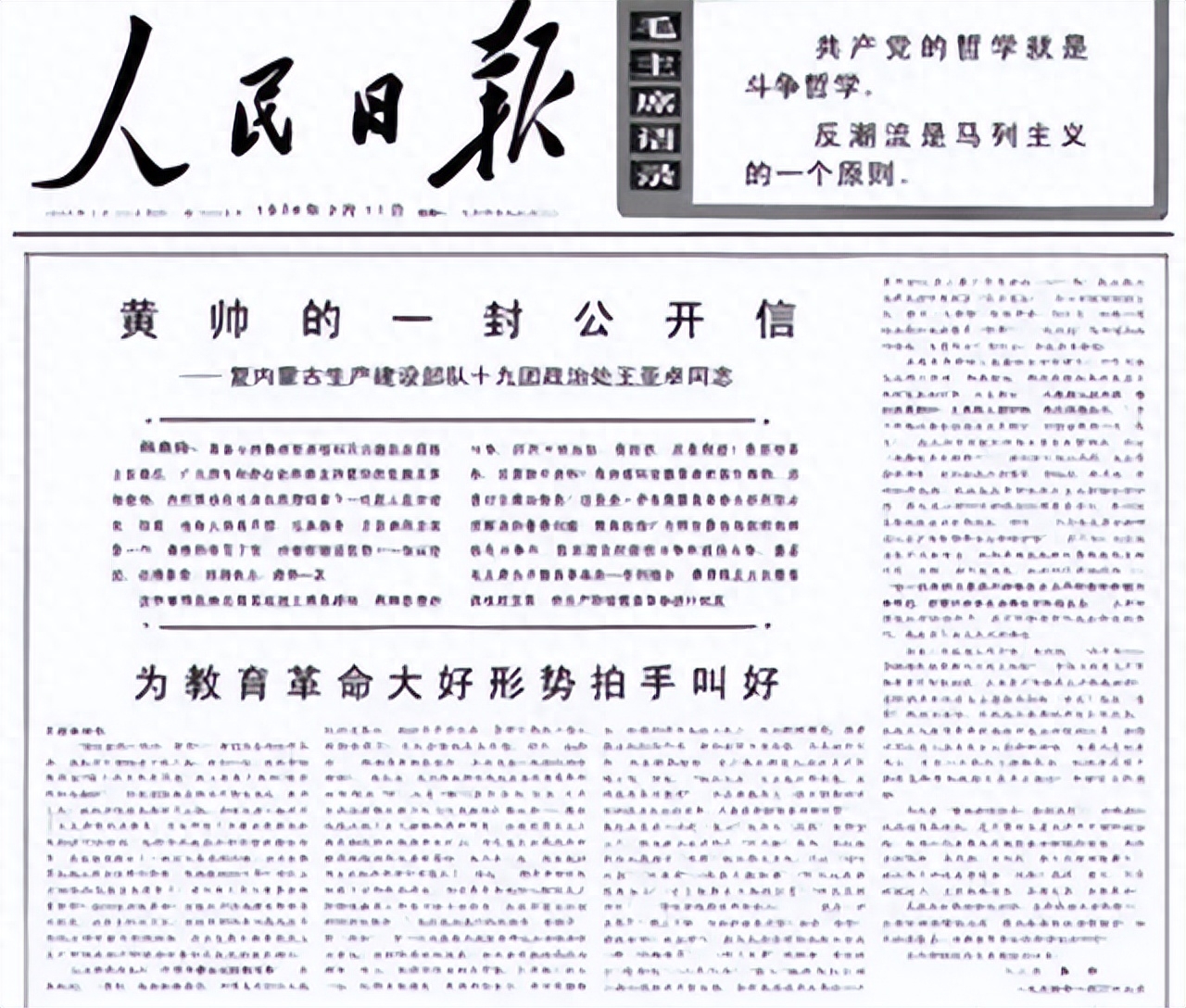 但黄帅没想到,她的信被有心人修改之后故意刊登在了《北京日报》、《人民日报》等报纸的头版,然后在全国范围内掀起了一场风暴。