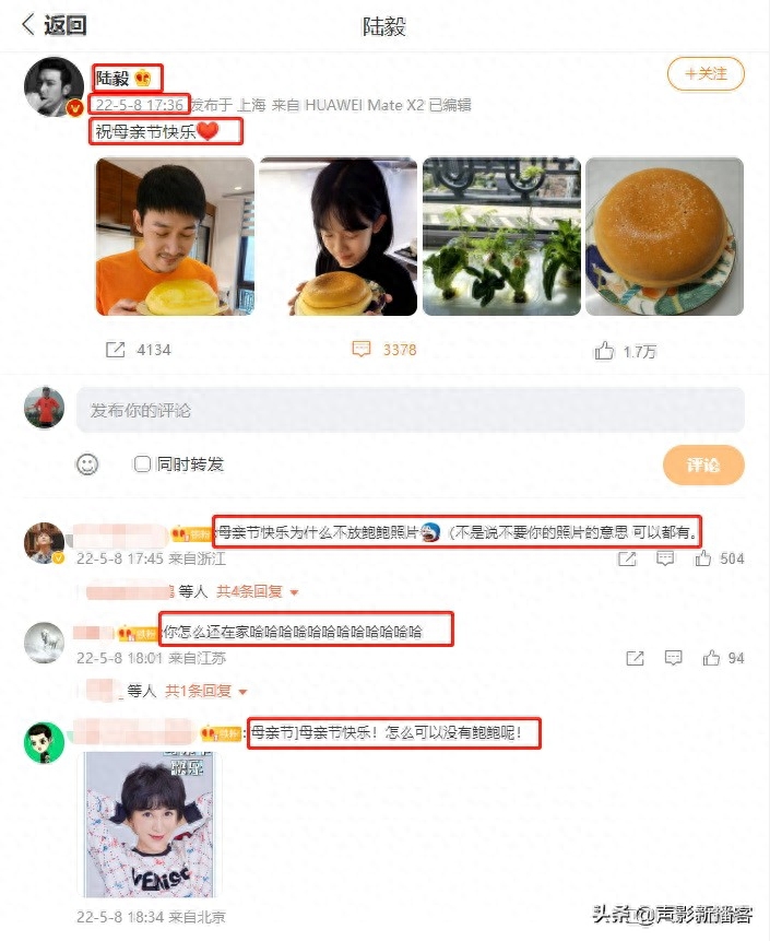 有网友就在评论区提醒陆毅:“母亲节快乐为什么不放妻子鲍蕾的照片呢?”还贴出了鲍蕾的一张美照来弥补缺憾。