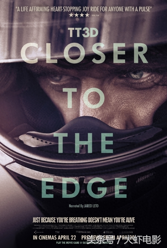 欧洲的纪录片《TT3D:触摸极限》讲述极速摩托车界的真实故事,以主观视角拍摄的亡命赛事--英国曼岛TT摩托车大赛,任何形式关于世界赛车运动影像的巅峰之作!观众观看时都要戴上专制的赛车头盔(配套3D眼镜),且至少看两遍以上,头一遍可感受亲自作为赛车手的彪速刺激,第二遍领略沿途的美丽风光。