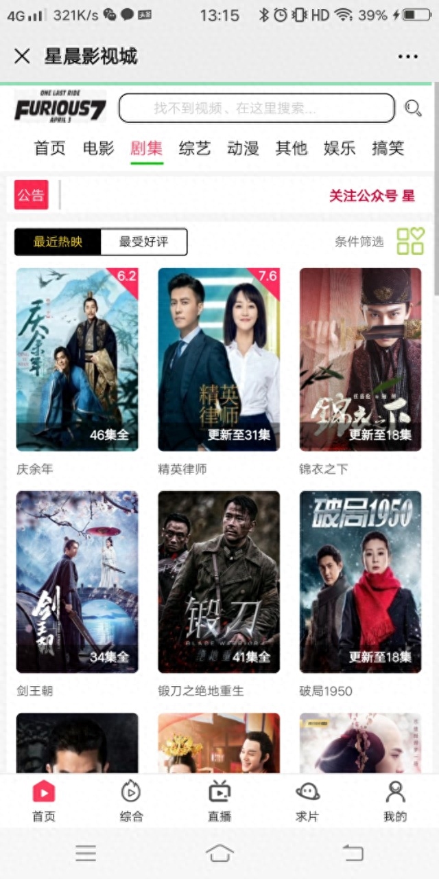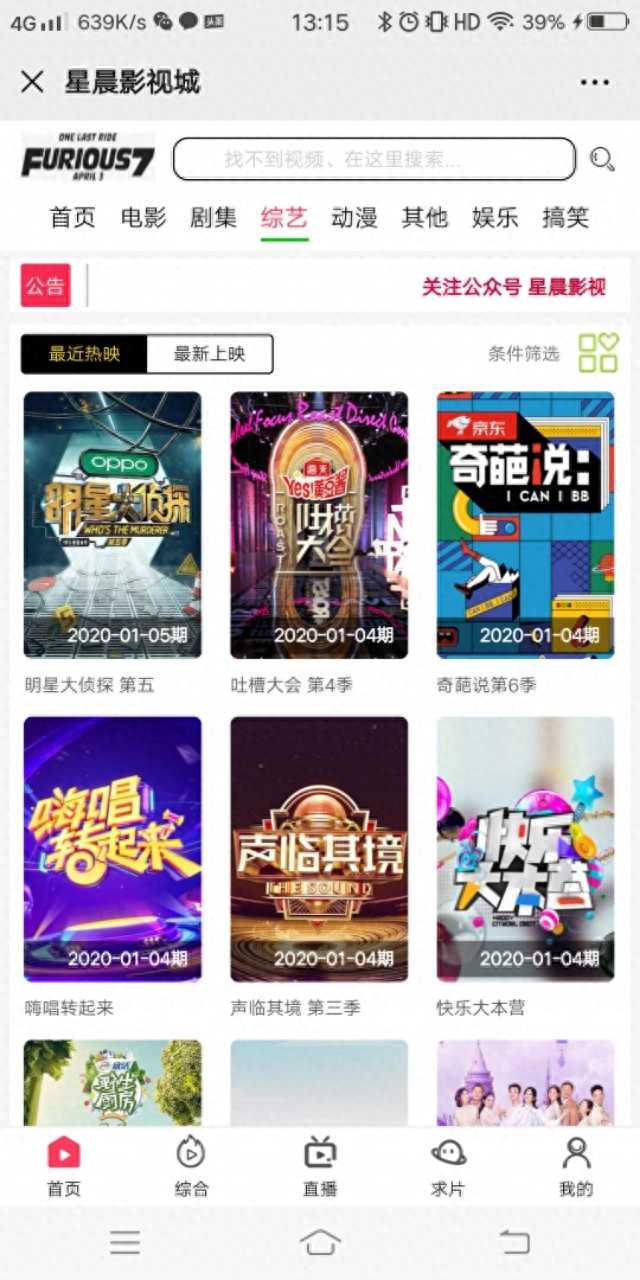 这个是用了很长时间的公众号,资源比较全,更新也很及时。综艺,电影,韩剧,等等都有。平台vip这里都是免费看,app同时更新
