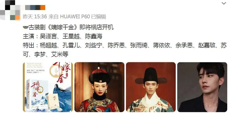《嫡嫁千金》开机,改名为《墨雨云间》,吴谨言演绝世大美人