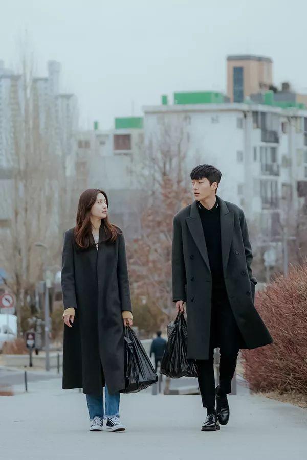 瞅瞅这剧照,两个人都穿着黑色长大衣,两个黑色塑料袋被拎出了秀款包包的感觉~