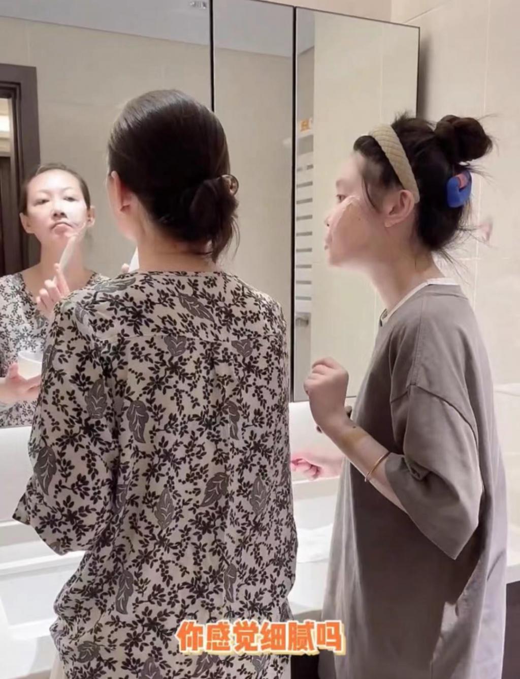 母女许久不见,自然是腻歪到不行,两人一直有说不完的话,球球还贴心地给妈妈护肤,和睦温馨的家庭氛围让人羡慕不已。