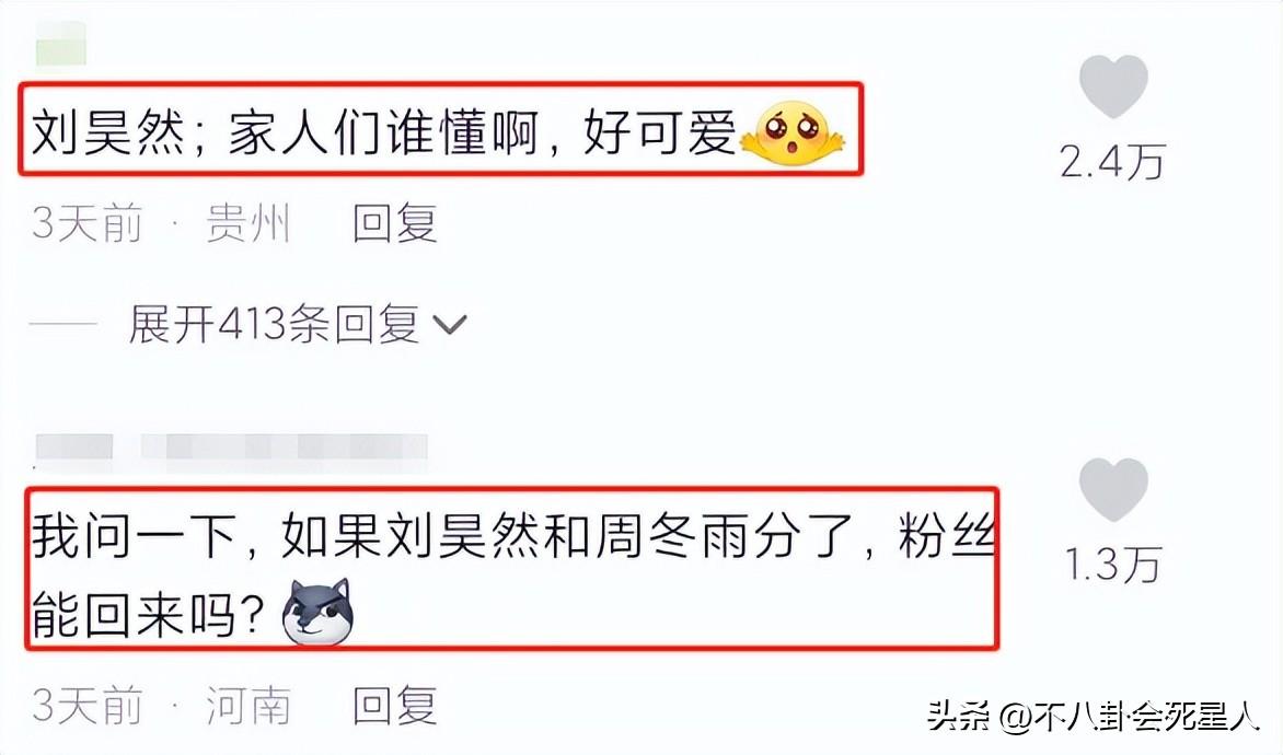 有网友抖机灵地回复:刘昊然,确实,两人的恋情绯闻闹得沸沸扬扬的,两位当事人都没有出面澄清过,刘昊然的很多粉丝,还因为这件事情脱粉了。