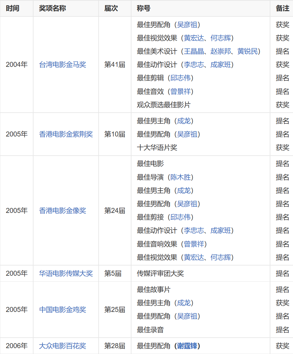 可是,尽管这部电影亏损严重,却在当时横扫各大奖坛,成龙凭借这部电影拿下了金鸡奖影帝,谢霆锋拿下百花奖最佳男配角,就连吴彦祖也获得了金马奖最佳男配角奖。