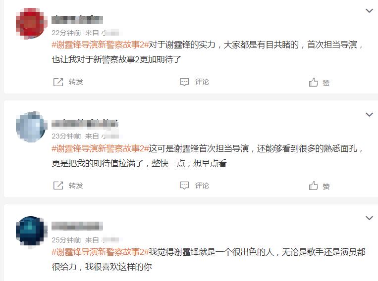 还有网友表示,谢霆锋从歌手到演员,再到老板和厨师,现在又解锁了一个新身份,那就是导演,就凭借他那股冲劲,就相信谢导的水平。