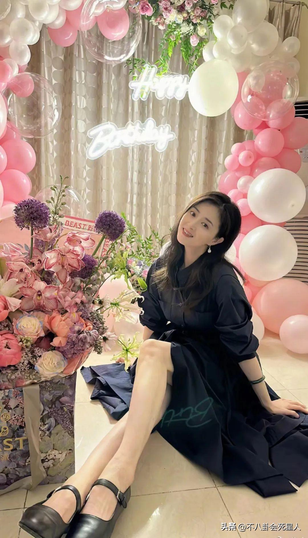 蒋欣庆祝40岁生日图片(眼窝凹陷双腿纤细,瘦成“纸片人”)