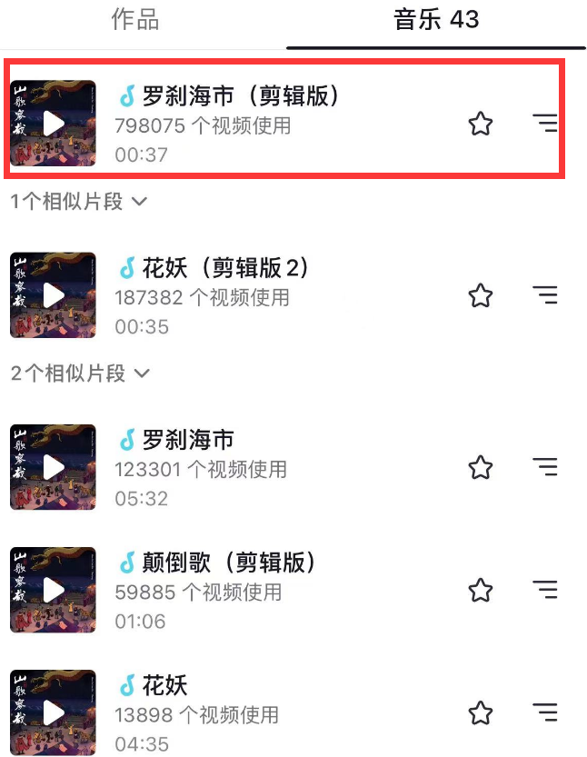尽管暂时还没有任何作品,但刀郎把自己的音乐上传了一部分,据数据显示,很多音乐片段均被网友们使用,其中《罗刹海市》使用量最多,高达79万次。