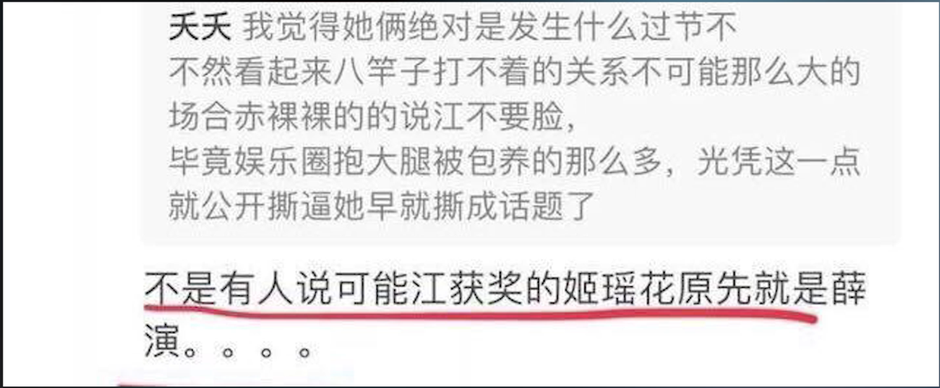 所以薛凯琪才会在颁奖典礼上,当众给对方难堪,“骂”江一燕不要脸。