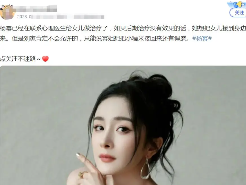 有传闻称,杨幂曾联系北京的心理医生,去治疗女儿的情况,可惜没有后续曝出。现在看来应当是没有得到太大的治疗效果,所以只能想出转移抚养权的主意了。