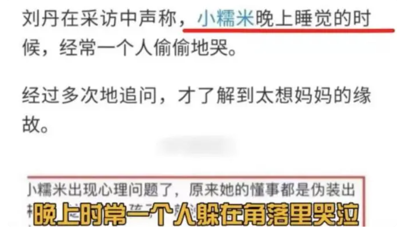 但到了晚上小糯米的情绪就出现了波动,她会躲在自己房间的角落中哭泣,还不敢放声痛哭,一直压抑着自己的情绪。在经过多种方法之后,这种情况没有减轻的现象,所以刘丹就觉得是因为缺少母爱,才拉下脸面去喊话杨幂。