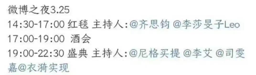 从微博之夜的预告来看,红毯直播为下午2点30分,然而红毯直播并没有准时开始,此次并不是因为明星迟到,而是直播出了故障,改为录播。