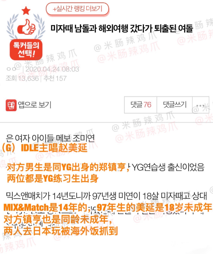 经过YG这番折腾之后,面姐仍然没有放弃出道的梦想,后来赵美延去了CUBE并在两年后于G-IDLE出道。