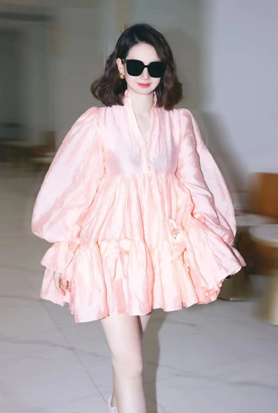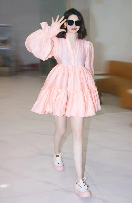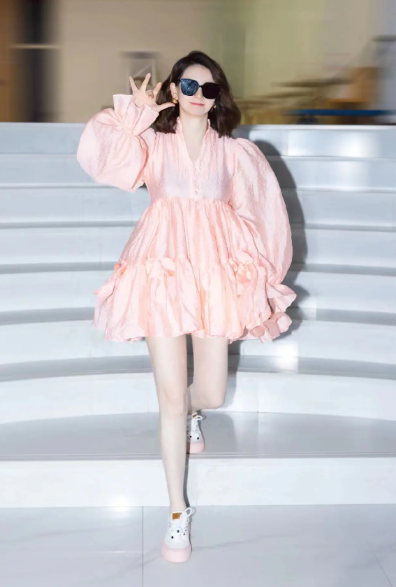 不过,粉嫩归粉嫩,戚哥自身的霸气范儿还是丝毫未减,这不,她一边穿着粉裙大秀少女一面,一边又戴上黑超耍酷,又甜又酷的样子分外养眼啊有木有。