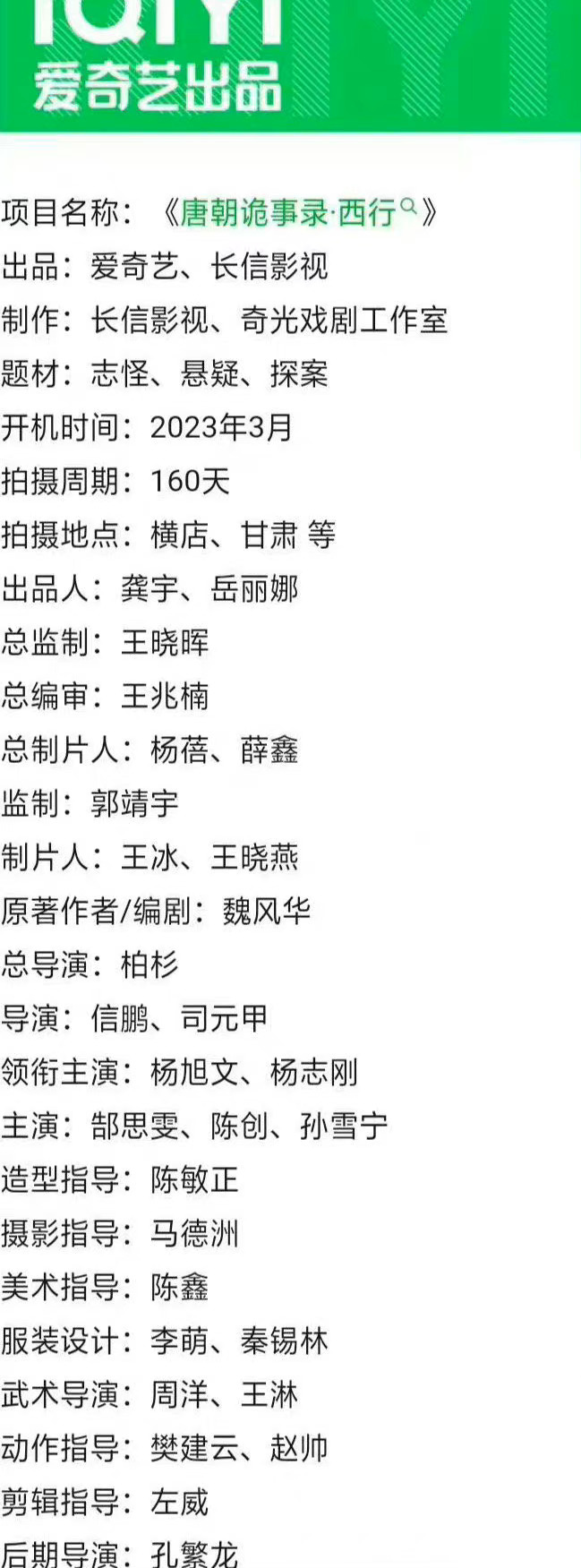 【求求幕后搞快点!搞快点!唐朝诡事录第二季将于三月开拍】唐朝诡事录第二季《唐朝诡事录·西行》即将开机,原班人马,3月开机,在横店、甘肃两地拍摄。拍摄周期160天。