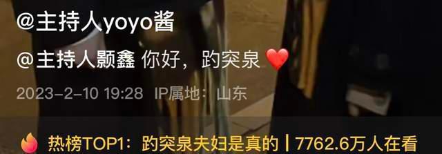 此次 yoyo 和颢鑫突然官宣恋情,瞬间引发全网关注,冲上热搜榜首,不少人直呼:趵突泉夫妇是真的!