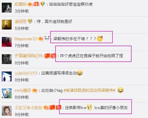 有网友看照问合照的时候梁朝伟的手在干嘛?提裤子吗?也有网友看照说迷弟影帝真的好像小朋友!