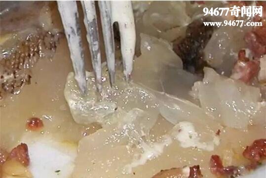 在中国,很多人把雪蛤膏这种甜点视为大餐之后的完美点缀。这道恶心的菜肴主要就是蛙类的输卵管。这种两栖动物的生殖器官以晾干收缩的形态出售,浸入水中后可以涨大到脱水形态时的10~15倍。之后加一点糖来赋予它一种特殊的甜味,就像大部分人期待从一道甜点中尝到的那种。