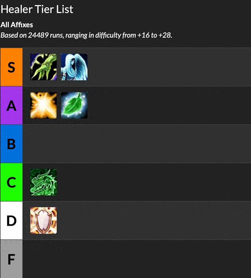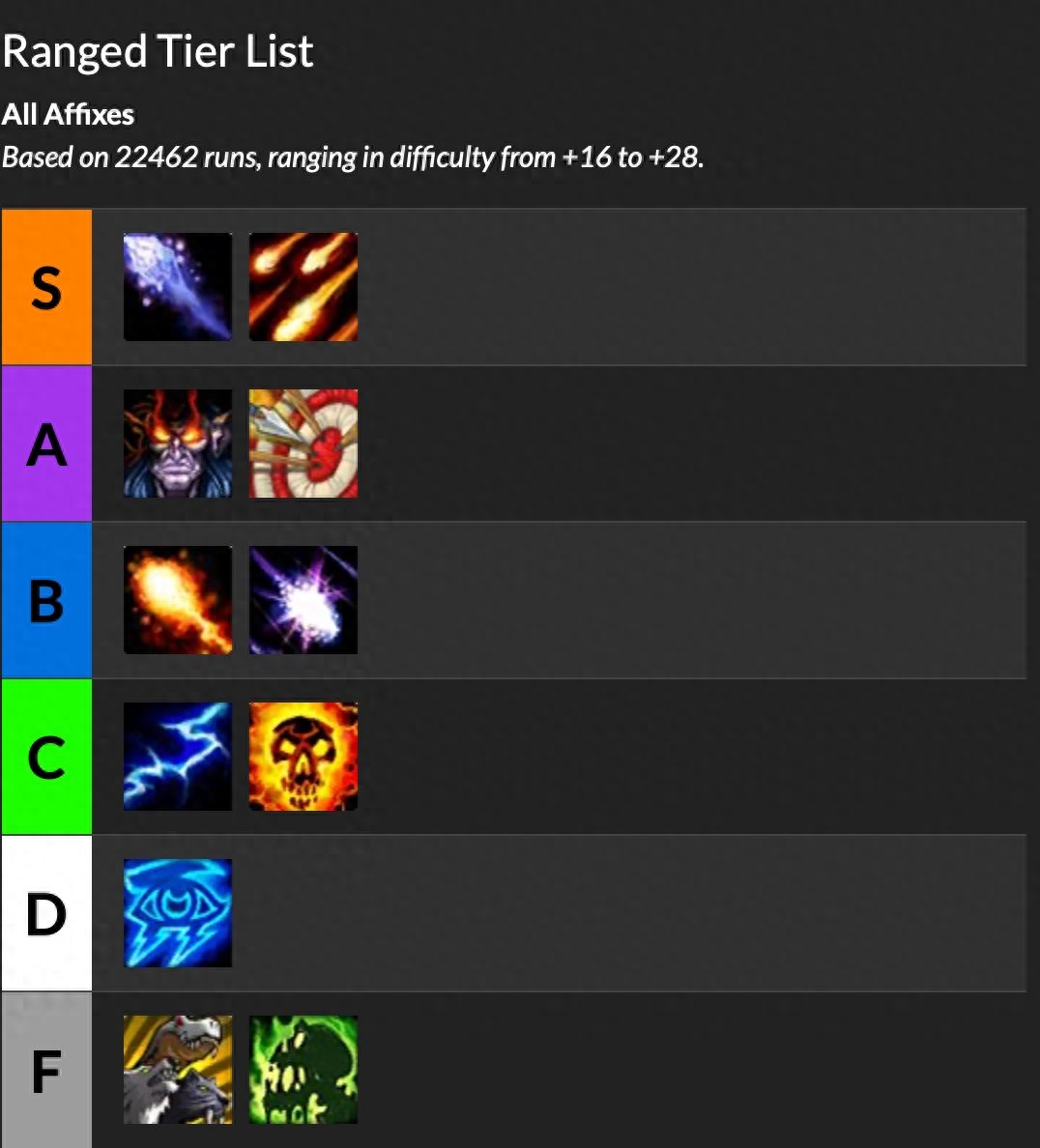 该网站查看所有地区每个大秘境每个词缀的前 100 个钥匙,并检查他们的raider.io 分数。坦克、治疗和DPS等数据都是来源于超过22000次大秘境数据进行的分析,从这些数据中,对于每个副本和职业进行分析,并且根据各个专精的数据来进行排名并设置等级列表。