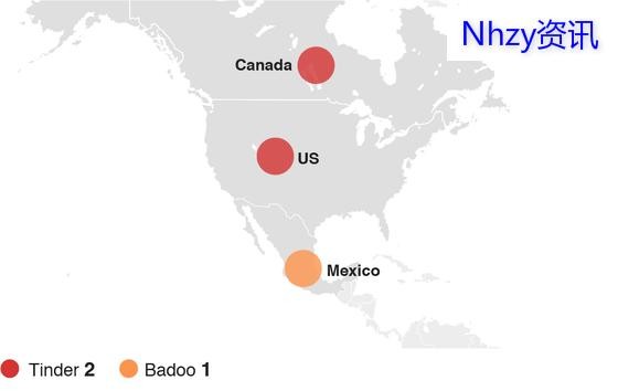 在美国和加拿大,Tinder的下载次数位居榜首。但在墨西哥,Badoo则超过Tinder一跃榜首。Tinder在加拿大App Store和Google Play的生活类软件中排行第10,而美国的则排行第15。