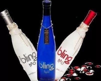 第三瓶“Bling H2O”。这个名字听起来还是挺可爱的,Bling Bling 的。它的瓶身是由施华洛世奇来亲自设计的,整个瓶身有着好几十颗水晶。相信大家也都听过施华洛世奇这个品牌吧,是全球非常知名的水晶制造商。所以这一瓶水你看过去的时候,闪闪发光。