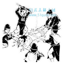 杖杀是唐朝zheng府运用极其普遍的刑罚,是一种用重杖击打屁股处死罪犯的行刑方式。《旧唐书 酷吏列传》记载:“笞罚人畏其不死,皆杖讫不放起,须其肿愤,徐乃重杖之,懊血流地,苦楚欲死。”可知道唐朝的法外酷刑杖杀不止是一种屈辱至死刑,而且还是一种折磨到死刑。唐朝的杖杀已经达到一种高超的害人水平。《旧唐书 刑法志》记载唐肃宗时期一次就将“达奚挚、张岯、李有孚、刘子英、冉大华二十一人,于京兆府门决重杖死。”唐朝的杖杀其适用的范围、性质、特点等在唐朝表现得极为复杂,正反映出唐朝法制混乱的现象。