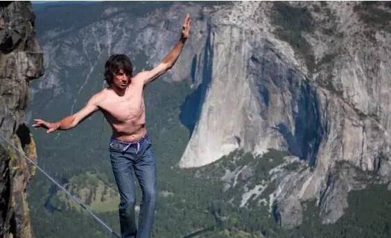 迪恩·波特仍旧世界上高空走扁戴第一人,扁戴本来便是一个宽约2.5厘米,厚度在0.3厘米的绳索,在绝壁之间将二端固定,而后在上头行走,是一件十分艰巨的事务,然而是他所维持的记录是49.8米,这比起中国高空行走第一人阿迪力觉得是还要利害点啊!