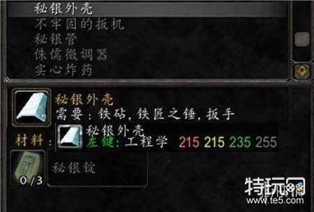 2、制作秘银外壳需要消耗3个秘银锭,且学习需要工程学195及以上的等级。