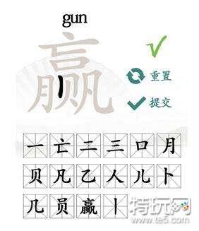 3、最后将上面找到的字进行拆分组合,可以找到(丨、赢),这样就可以过关了。