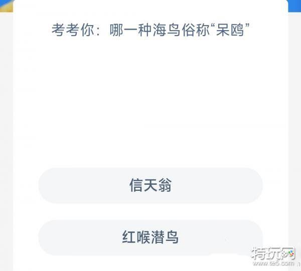 2023支付宝蚂蚁海洋3月14日的题目已经更新了,今天的题目为:考考你哪一种海鸟俗称呆鸥?信天翁还是红喉潜鸟呢?可能很多小伙伴可能还不太清楚正确答案是什么。下面小编就为大家带来了正确答案分享,希望能帮助到你。