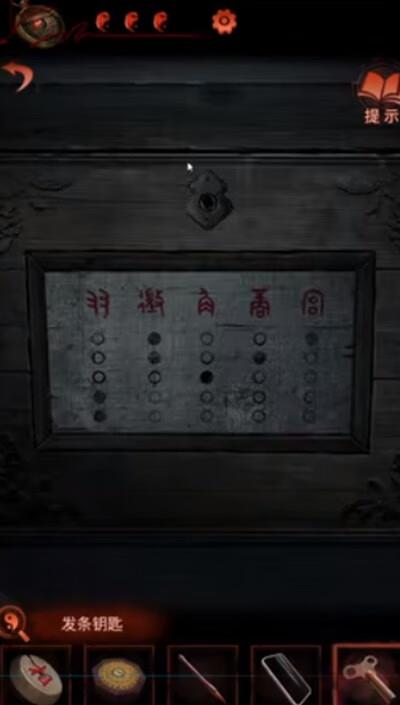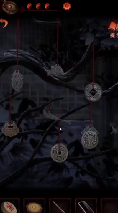 8、按照正确的顺序排列后院摇钱树上的花钱,获得发条钥匙。然后回到最初的房间,对话拿到打火机和银戒指;