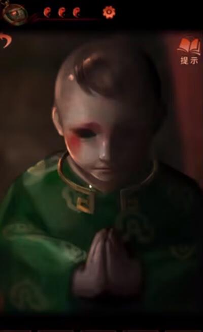 18、根据佛堂桌子暗格里的书的提示,去西洋收藏室解开挂钟机关,获得剪刀。用剪刀剪掉佛龛下的线;