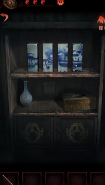 19、解开最初房间左边柜子的右侧拼图谜题,拿到符咒;
