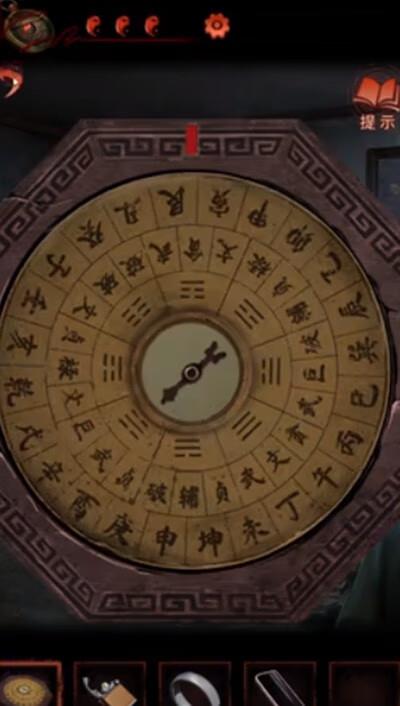 5、去走廊使用罗盘,获得线索,根据线索拿到风水室门锁的密码,进入风水室,查看桌上的日记;