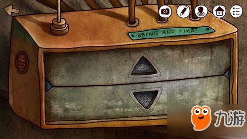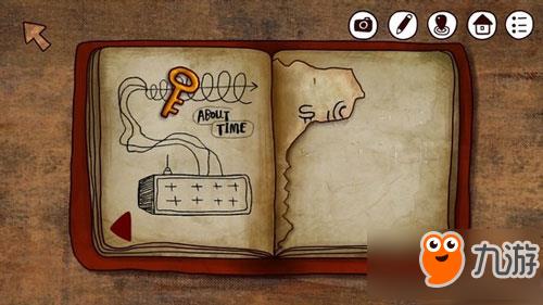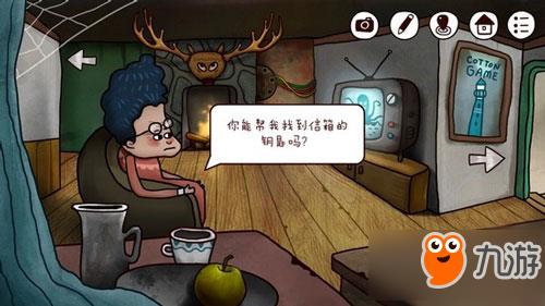 来到客厅,和老人对话,得到信息【1.邮筒里有船票;2.邮筒需要钥匙;3.工厂的门有机关;4.楼上有时间机器;5.开启时间的密码在笔记本上;6.楼上需要用铅笔涂涂写写。】