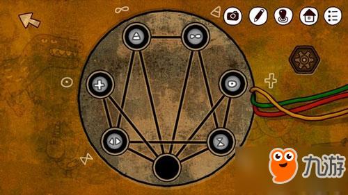 如图所示,需要玩家把对应的图像挪到正确的位置,点击石块移动,石块只能沿着黑线移动到空地。