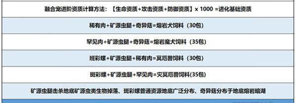 饲料:新宠物需要熔岩魔犬35包饲料和焰岩犬30包饲料,可能后面是冥厄兽30包饲料和灾厄冥兽35包饲料;