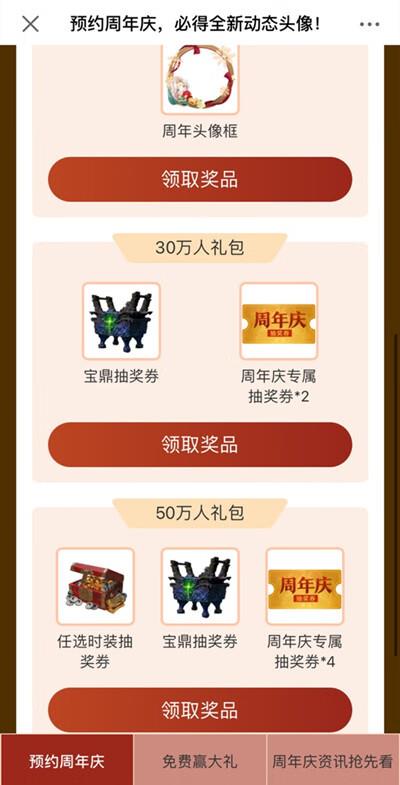 通过这个活动,玩家们可以获得三种抽奖券,分别是周年庆专属抽奖券、宝鼎抽奖券以及任选时装抽奖券。