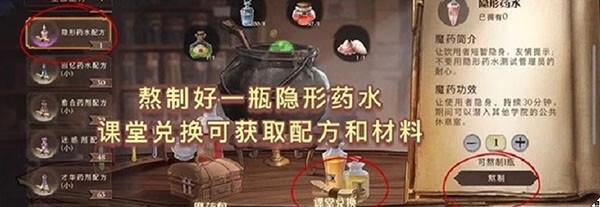 隐形药水制作:在寝室中间点击“魔药”进入魔药制作,在界面左侧选择“隐形药水”进行熬制;