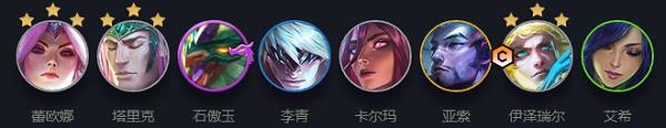 阵容成员:蕾欧娜+塔里克+石傲玉+李青+卡尔玛+亚索+伊泽瑞尔+艾希