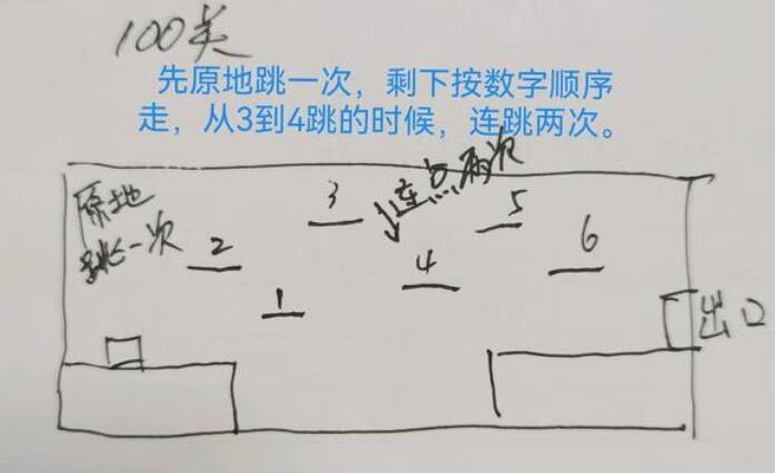 先原地跳一次, 剩下按数字顺序走,从3到4跳的时候,连跳两次。