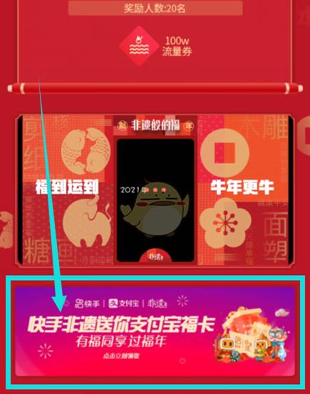 2、在进入该活动后,我快速向下滑动,找到快手非遗送你支付宝福卡的活动并点击