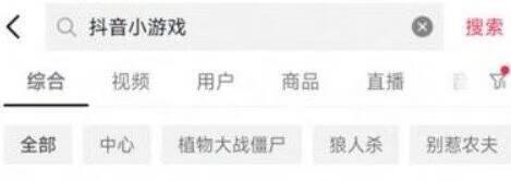 2、打开后,在最上方的搜索栏里搜索“抖音小游戏”。