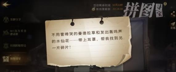 线索:不用管啼哭的曼德拉草和发出轰鸣声的水仙花....带上耳罩,帮我找到另一片碎片!
